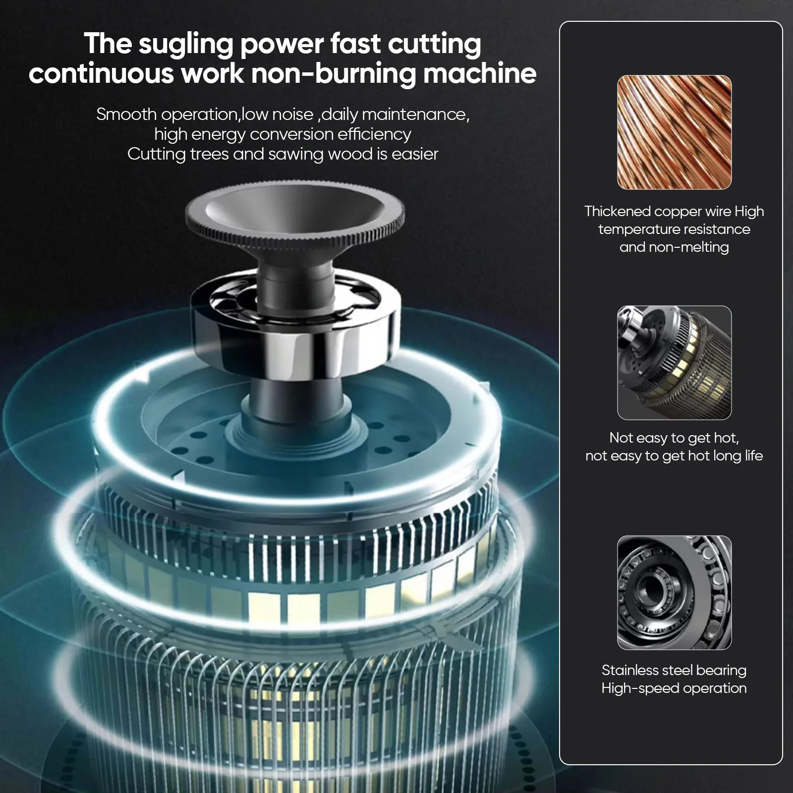2.Motore brushless super potente: la nuova sega elettrica è dotata di un motore brushless in rame puro, robusto e resistente al calore.Il grande rotore può resistere al sovraccarico, alla combustione efficace della macchina, rendendolo più efficiente, prolungando la durata e prolungando la durata.