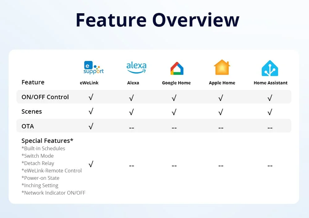 【Compatibile con matrice】SONOFF MINI-D è un dispositivo certificato Matter, può essere integrato in piattaforme abilitate Matter, come Alexa, Apple Home, Google Home, Home Assistant, ecc.Ti consente di lavorare con altre marche di dispositivi Matter e creare una configurazione domestica intelligente unificata.