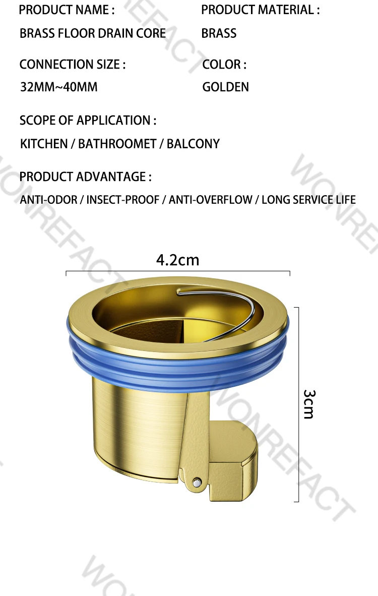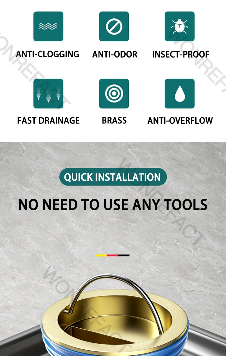Scarico a pavimento in ottone Cor Anti-odore Anti-insetto Fogna Drenaggio rapido Scarico a pavimento per bagno Nucleo Durevole Installazione rapida Scarico a pavimento