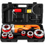 Fustelle intercambiabili 1/2"-2": 6 teste e matrici incluse: 1/2"/12,7 mm, 3/4"/19,1 mm, 1"/25,4 mm, 1 1/4"/31,8 mm, 1 1/2"/38,1 mm, 2"/50,8 mm.La nostra macchina per infilare tubi adotta matrici in acciaio al carbonio, lunga durata, filettatura trasparente.Le teste degli stampi possono essere sostituite rapidamente.