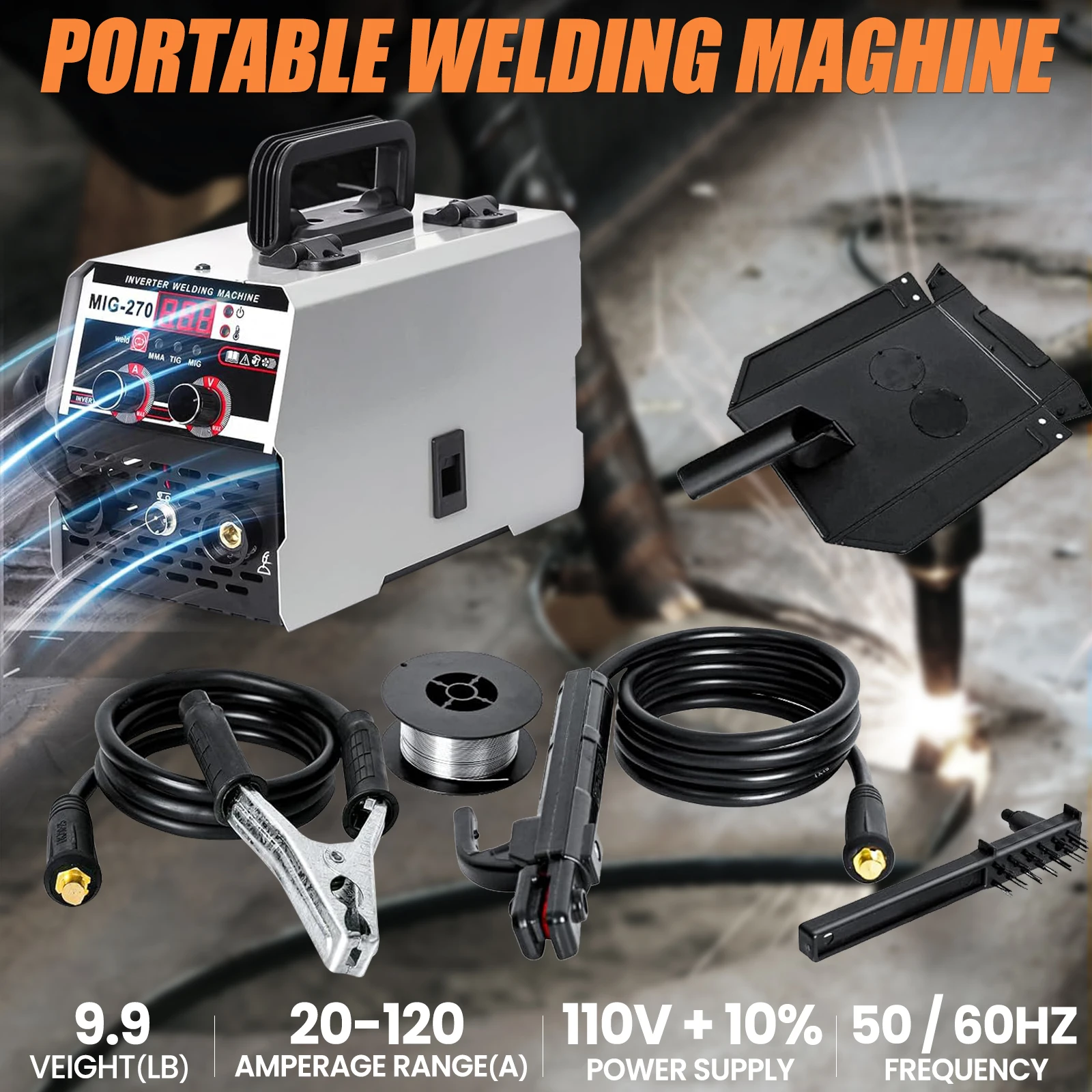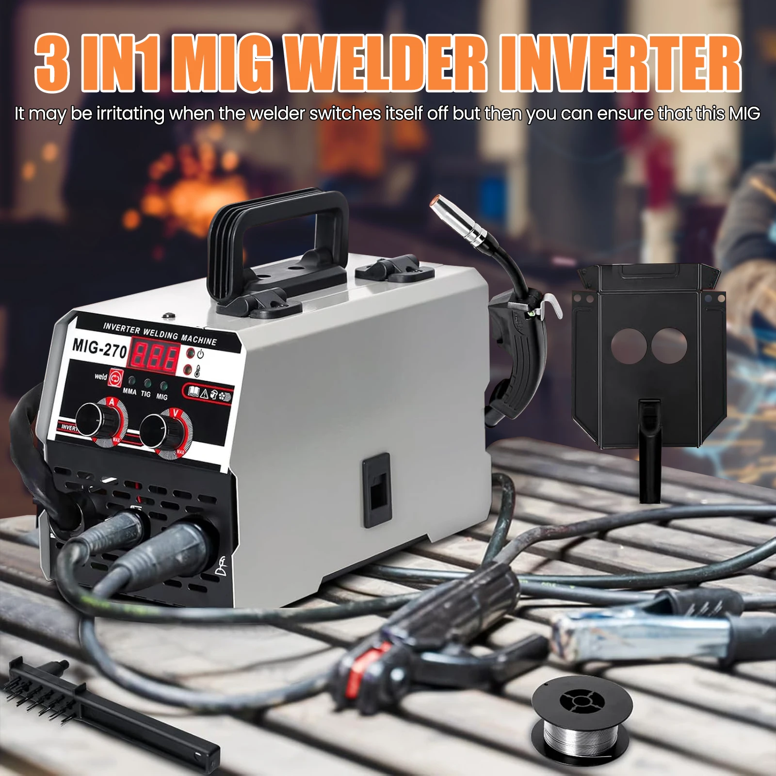 Saldatrice inverter 3 in 1 MIG-270, macchina MIG/MMA/TIG portatile da 220 V, senza gas e semiautomatica con display digitale e protezione termica per il fai da te domestico