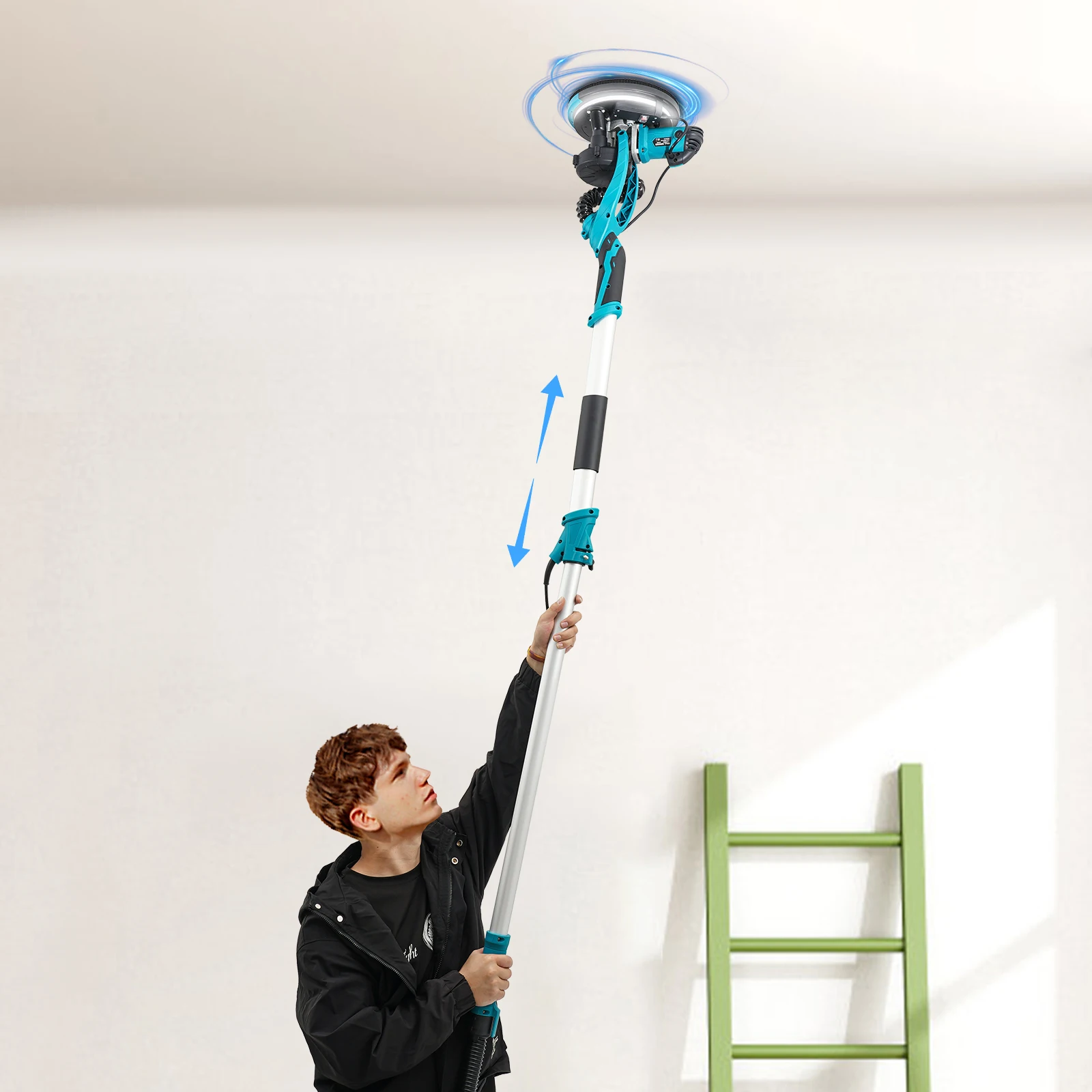 Design umanizzato:È possibile regolare il disco su 90° e fissalo con la molla per levigare i soffitti verticalmente e la lunghezza del prodotto può essere regolata da 3,9 piedi a 7,2 piedi, rendendo l'operazione più comoda esenza sforzo.